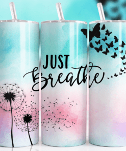 The uplifting message, “Just Breathe,” encourages mindfulness and calm in life’s busy moments. Whether you’re sipping your morning coffee or staying hydrated throughout the day, this tumbler is a perfect companion for embracing tranquility, faith, and inner strength.