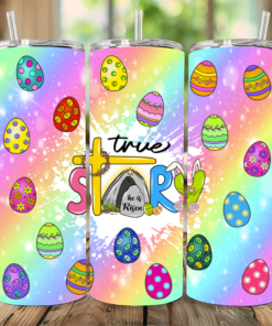 At the center of this inspiring tumbler, the phrase “True Story” stands boldly, accompanied by a powerful depiction of the stone rolled away from the tomb, symbolizing the resurrection of Jesus Christ. Inscribed on the stone are the words “He Is Risen”, serving as a timeless reminder of the miracle of Easter and the promise of new life.